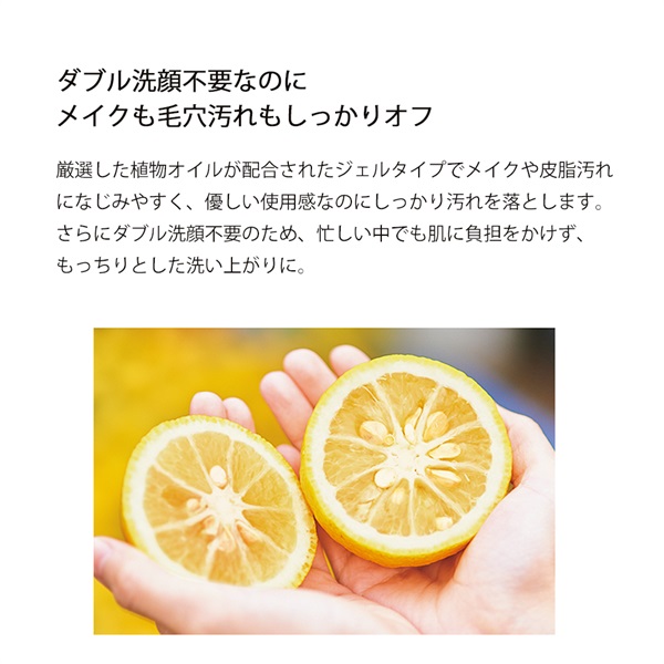 ダブル洗顔不要。肌をやわらかく整えその後の美容成分の浸透を高める、柚子の香りのとろける贅沢ジェルクレンジング。