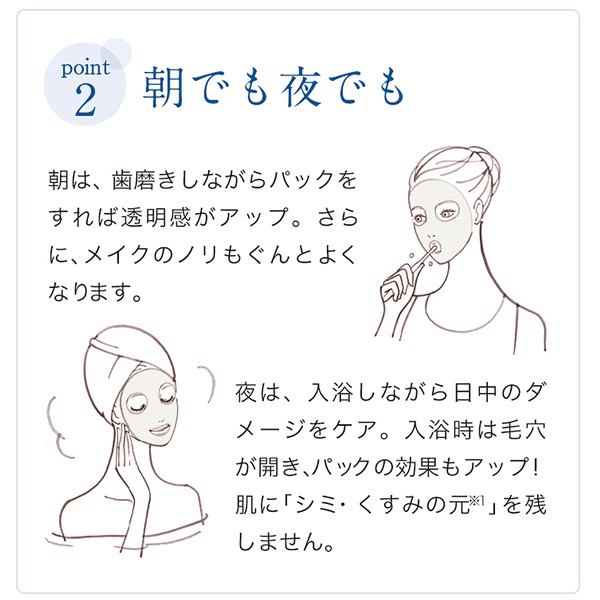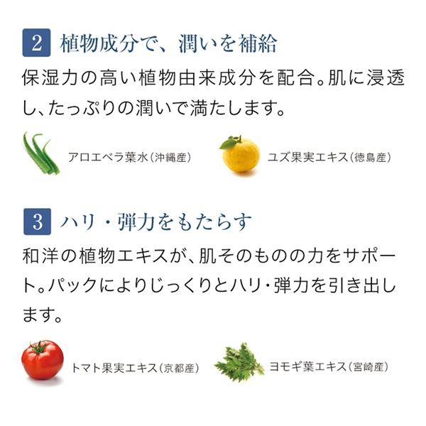 ※パックは目元、口元にも使用できますが、洗い流す際には目をつぶるなど、目に入らないようご注意ください。