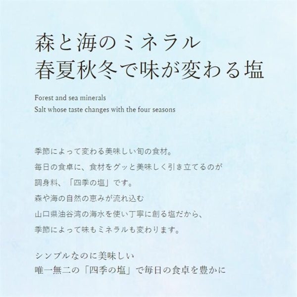森と海のミネラル。春夏秋冬で味が変わる塩。
