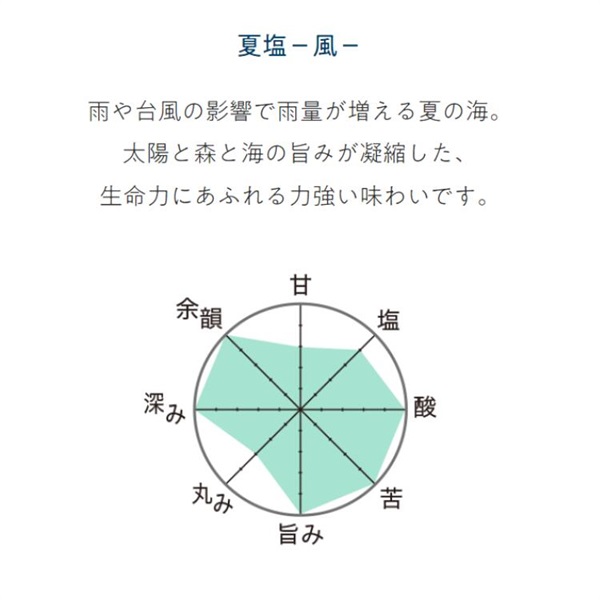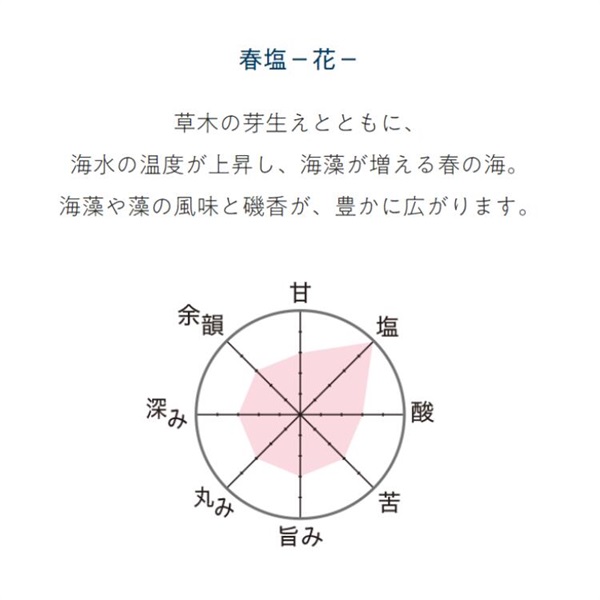 塩匠である雄然さんが選りすぐったその季節の味わいが際立つ塩です。