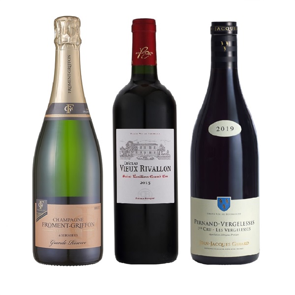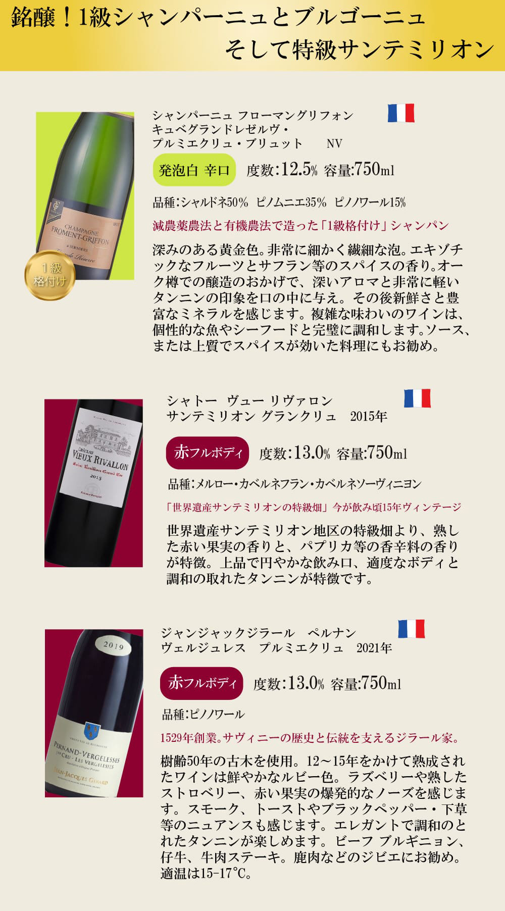 【FRA-004】銘醸!1級シャンパーニュとブルゴーニュ、そして特級サンテミリオン 3本 《tws》