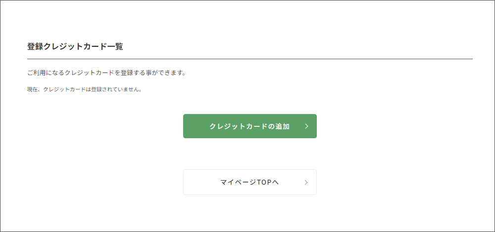 ご使用されるクレジットカードを予めご登録いただけます。尚、カード番号と有効期限についてはクレジットカード非保持化のため、表示されません。