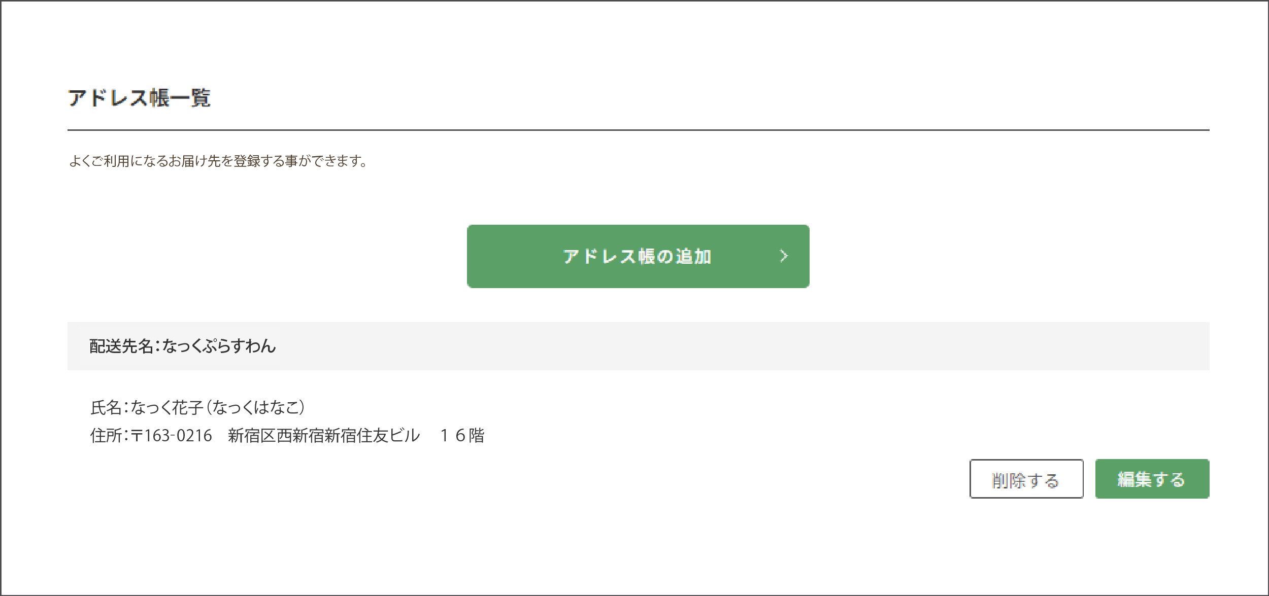 よくご利用されるお届け先を登録することができます。あらかじめ複数登録しておくことで、ご注文時に選択することができます。