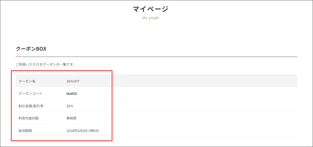 現在利用することのできるクーポンをご確認いただけます。 クーポンはカート画面にてご使用いただけます。